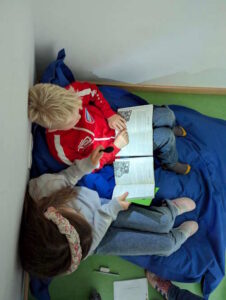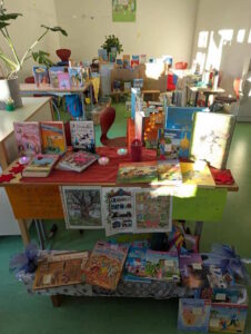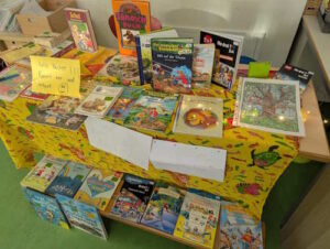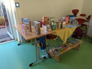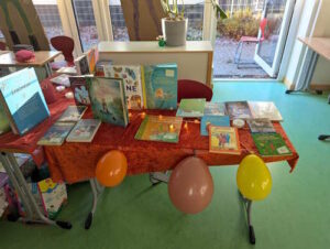 Ein besonderes Highlight war wie jedes Jahr unser Bücherflohmarkt: Die Kinder schlüpften in die Rolle von Verkäuferinnen und Verkäufern, boten ihre Bücher an und handelten wie echte Profis. Gleichzeitig konnten sie selbst neue Lieblingsgeschichten entdecken und mit nach Hause nehmen.